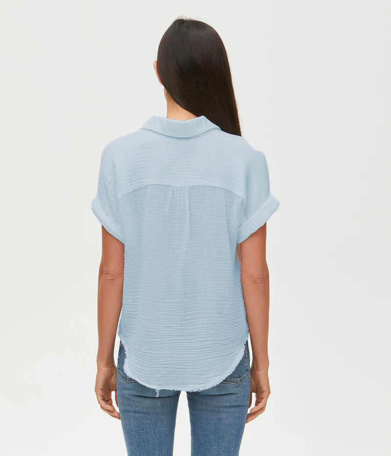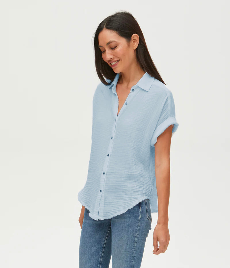 Effortless and light, Bailey has rolled short sleeves, a button up silhouette and a raw-edge hem with an easy fit. Made from our cool and airy double gauze that you'll live in all summer.