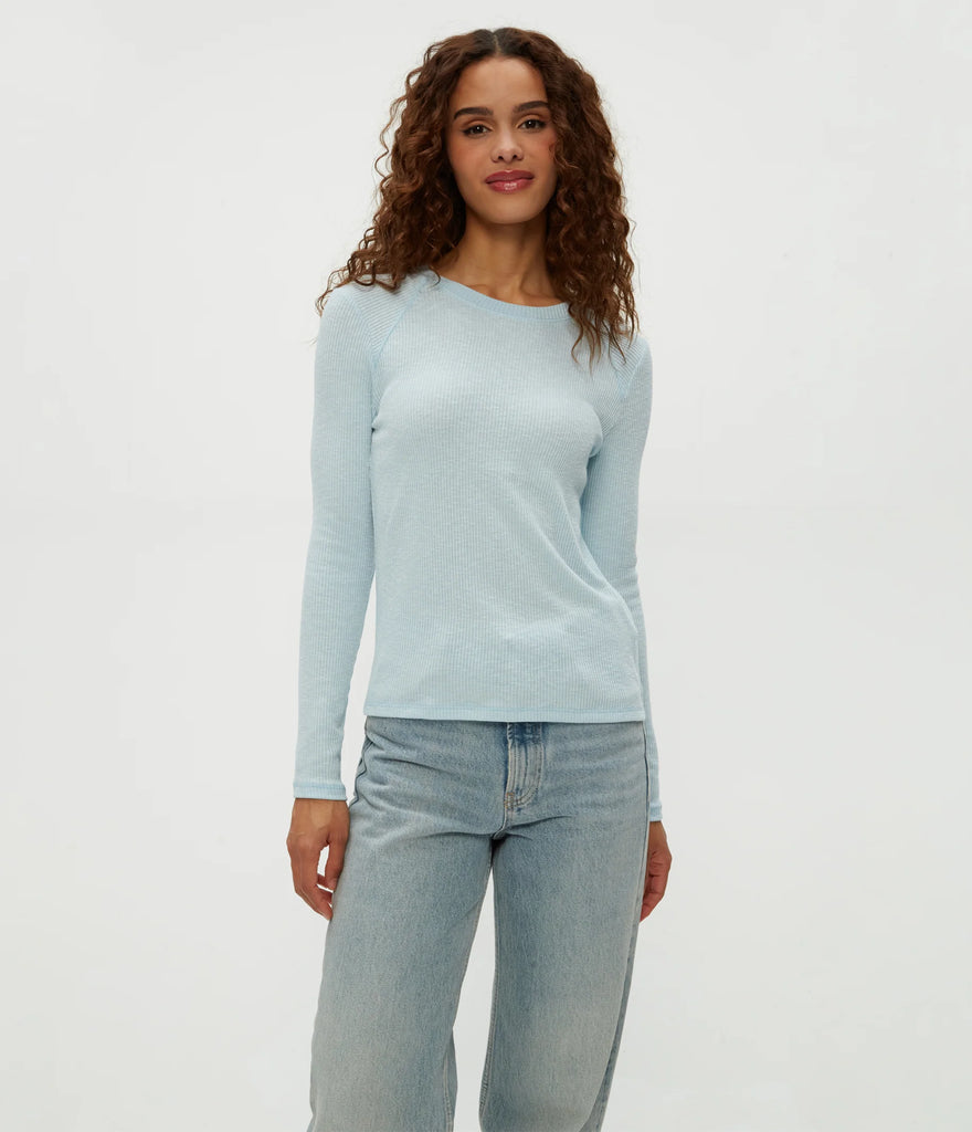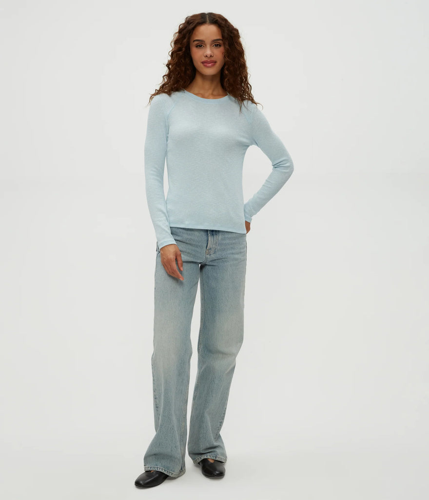 Designed with your comfort in mind, this long sleeve crewneck has a place in every wardrobe. Made from a soft-knit slub rib jersey fabric, this top offers a relaxed fit and extra long sleeves making it a perfect match for your favorite tailored pieces or denim.