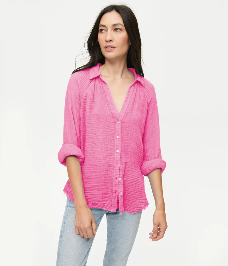 Toni Gauze Button Down - Flamingo