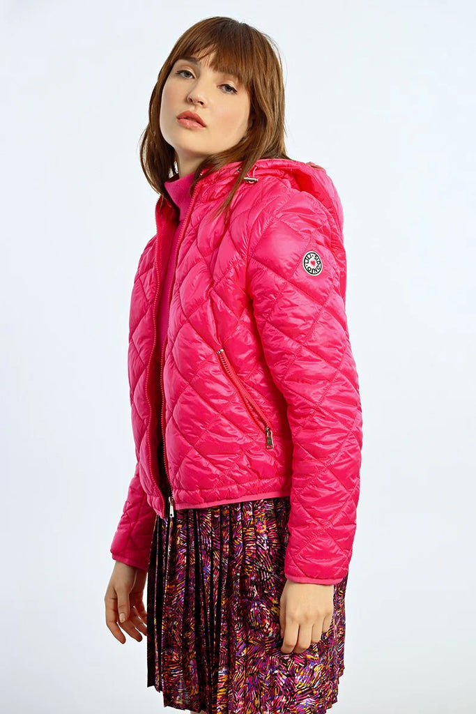 -Quilted and topstitched down jacket-Hood with drawstring hood-Side zip pockets-Double collar-LILI SDONIO logo on the side of the sleeve-Zip closure on the center front