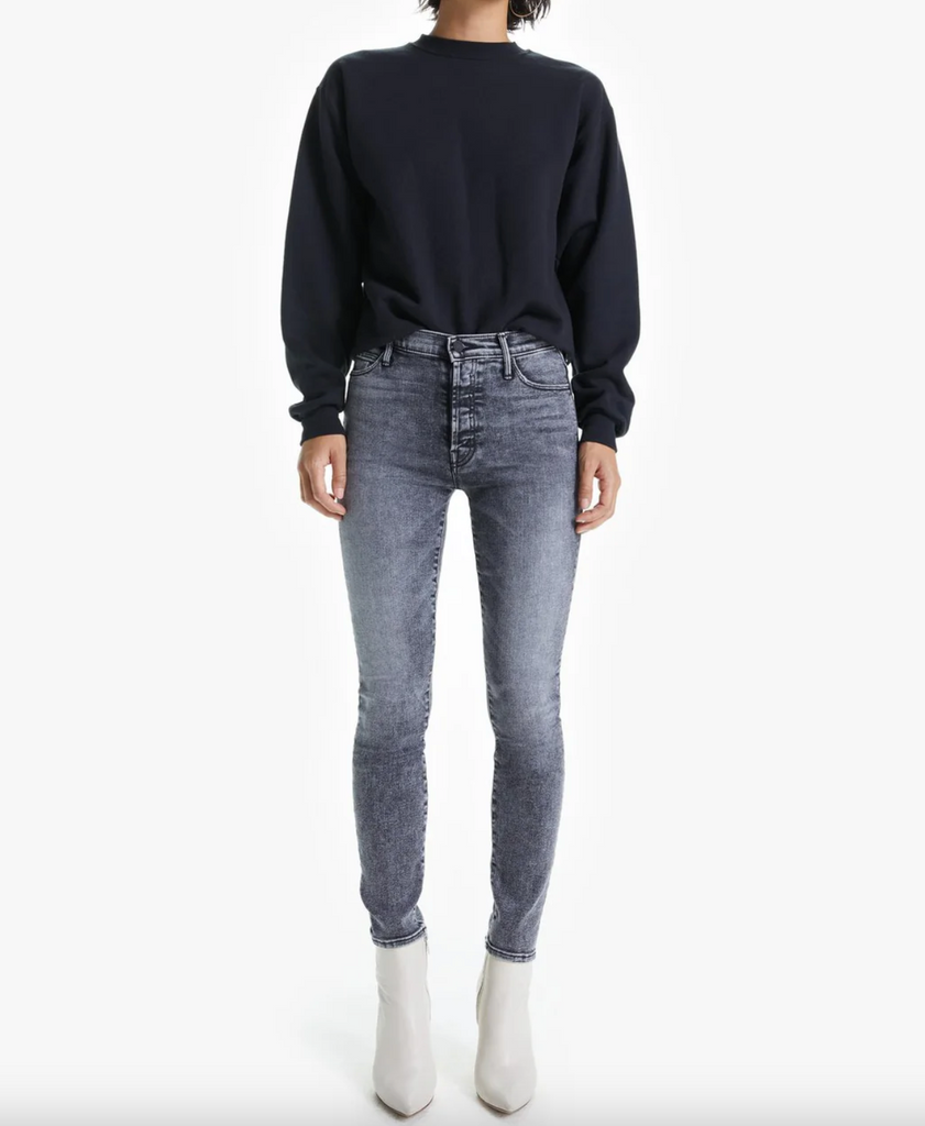 All aboard. Our slim fit high rise in a faded black stretch denim.