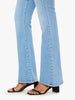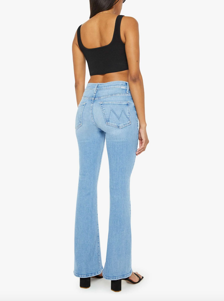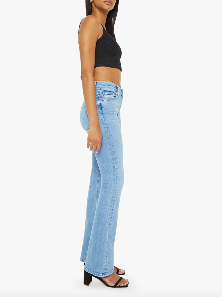 Twist of fate. This cult-favorite flare jean has a mid rise with a 31-inch inseam and a clean hem. Cut from stretch denim, Blessing In Disguise is a mid blue with subtle whiskering and fading at the knees.