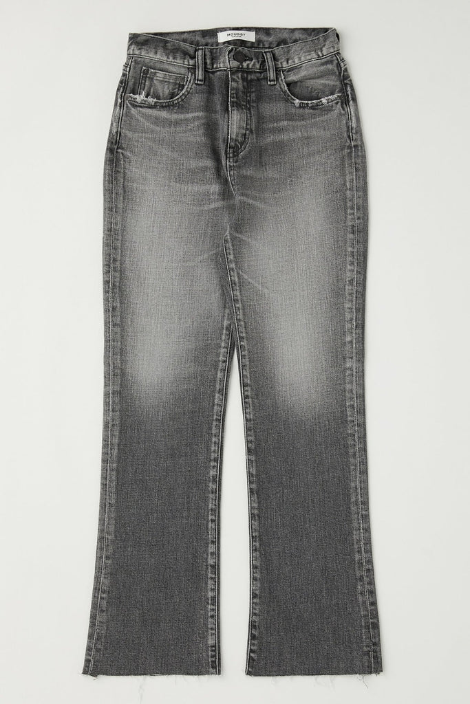 - Faded black high rise flare jeans