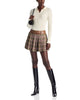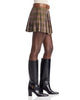 Step out in the Derrick, a flirty pleated plaid mini skirt with Western-inspired flair. A contrast faux leather built-in belt adds a touch of edge to the fall-forward flannel-like fabrication. Pair with a cozy sweater and boots for a weekend-ready look.