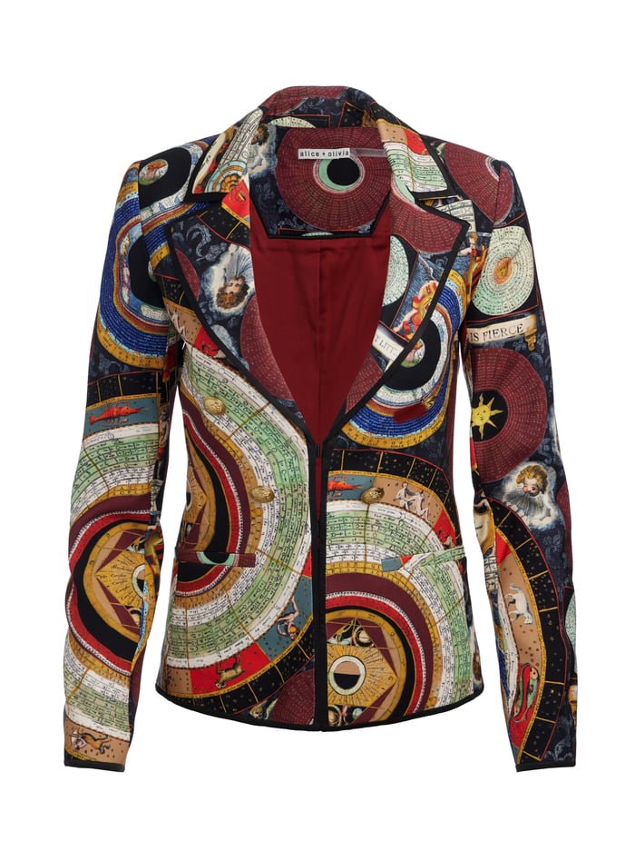 A blazer that does it all. Mya is tailored in satin-back crepe with a sharp notch collar, strong shoulders, and a sculpted waist that creates a subtle hourglass shape. The bold, abstract print makes it statement-making, while the front hook closures keep it polished. Toss it over denim for day or wear it with its matching trousers and heels for night- either way, it’s giving major boss babe energy.