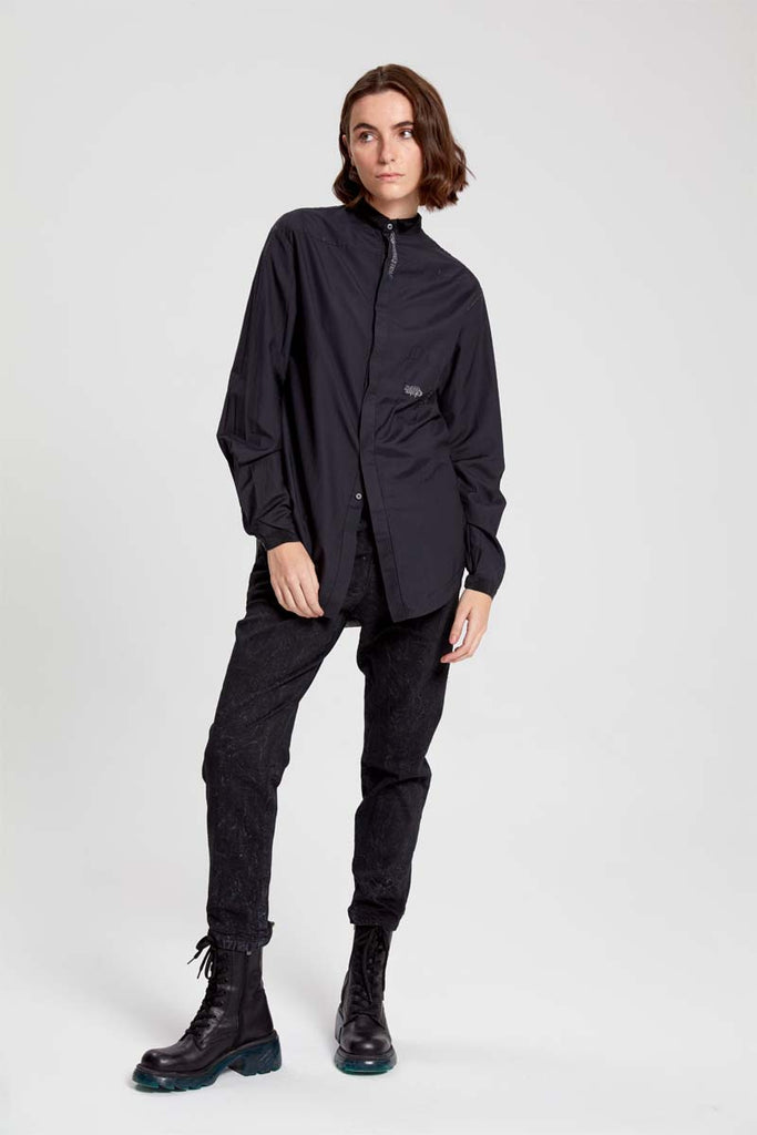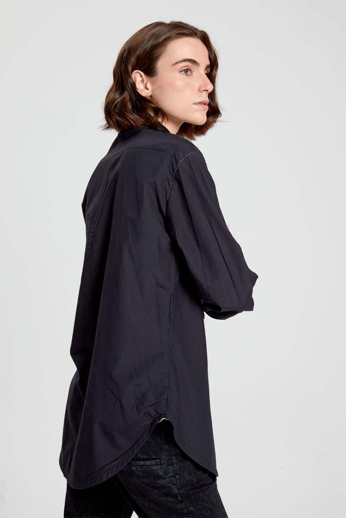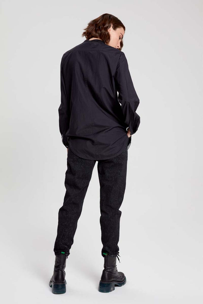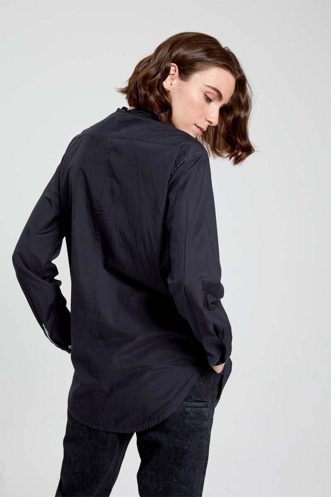 Washed silk cotton fabricUltra light weight and softRegular form and comfort feelSlim point collarHand stitched detailed with contrast coloredLong sleeve and slim cuffsButton down button closure