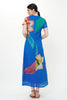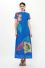 Transport yourself to the tropics with hibiscus flowers splashed across the brilliant blue background of this Short Sleeve Shift Maxi. Breezy open weave cotton provides a subtle texture and shine for an eye-catching effect.