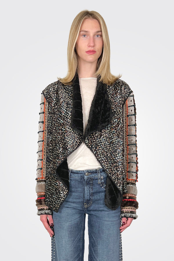 Double-Breasted Embossed Jacket - Grey
