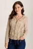 Four corded adjustable channels grace the front of this tactical-inspired lightweight outerwear for a unique ruched look. A comfy hood, flapped breast pockets, and jersey inserts for easy movement take her all the way.