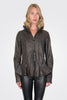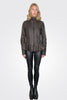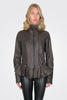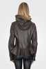Leather jacket with flared hem. Full leather hood. Zipper enclosure