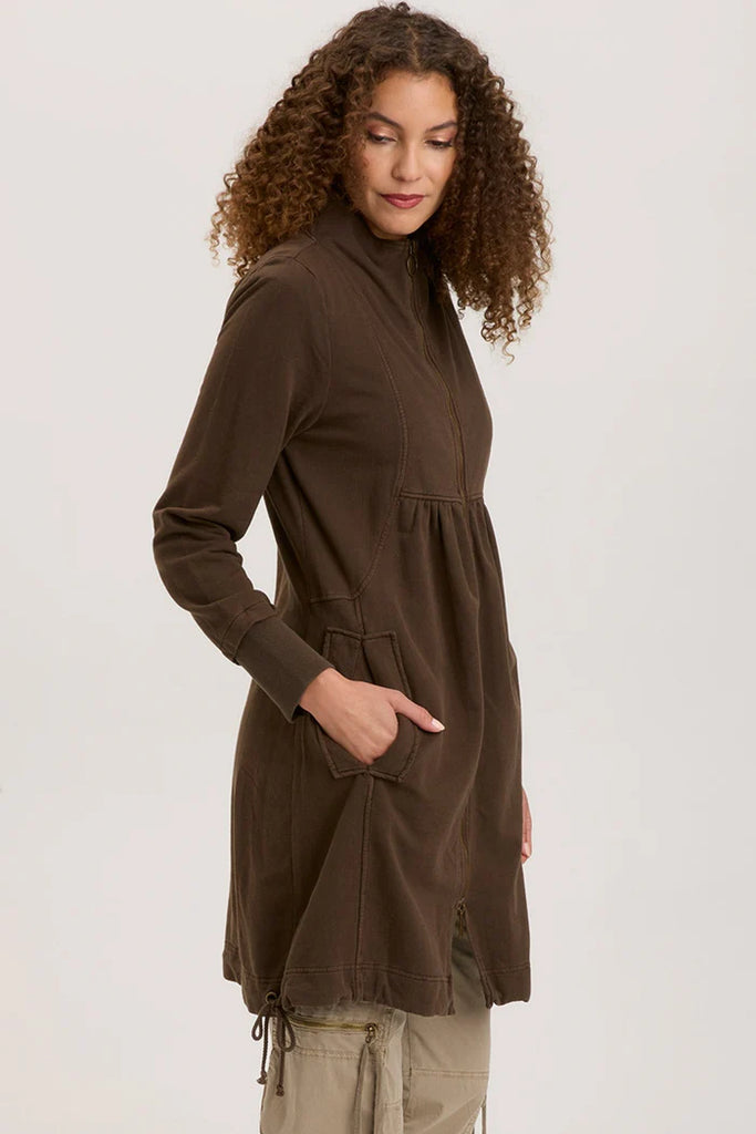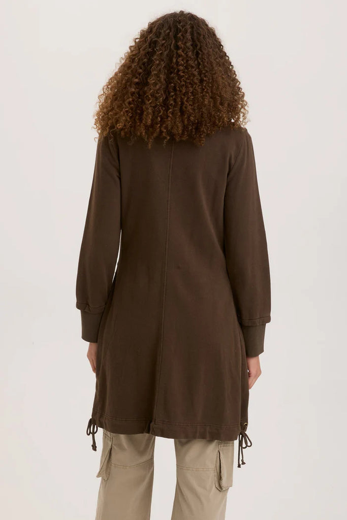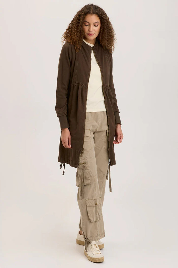 Back in the archives we went to find this one of a kind! With ribbed cuffs, a funnel-neck style, fun ruching, cinchable hem and a couple overstated pockets, no wonder we brought this one back!