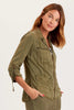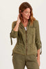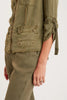 Hardware and raw edges are highlighted in our Raphael Blazer. Fabric mixed contrasting panels, eyelets along the lapel and pocket edges, plus brass D-Ring and tabbed sleeves are just a few of the details thorughout this interesting jacket.