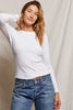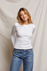 a classic long sleeve silhouette cut; the jolie features a crew neckline and full length sleeves in a soft loose knit sweater rib.