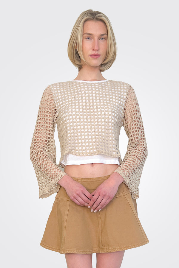 Knit Bell Sleeve Top - Oatmeal Yellow