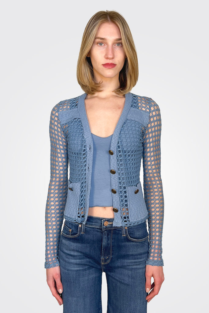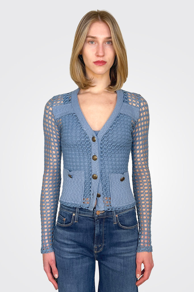 Knit Button Cardigan Jacket - Vintage Blue