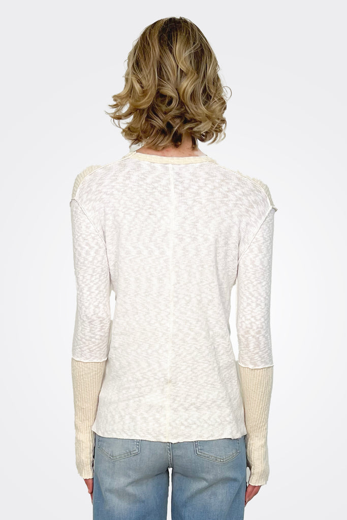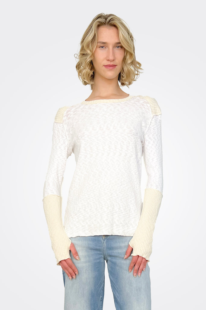 Ribbed Sleeve Long Sleeve Top - White Natural