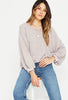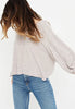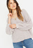 This pullover has a scoop neckline in the front and plunges in the back. Made with our softest marled brushed fabric, it features banded cuffs and hemline. The relaxed fit, center seam detail and cropped puff sleeves allow it to easily be dressed up or down.