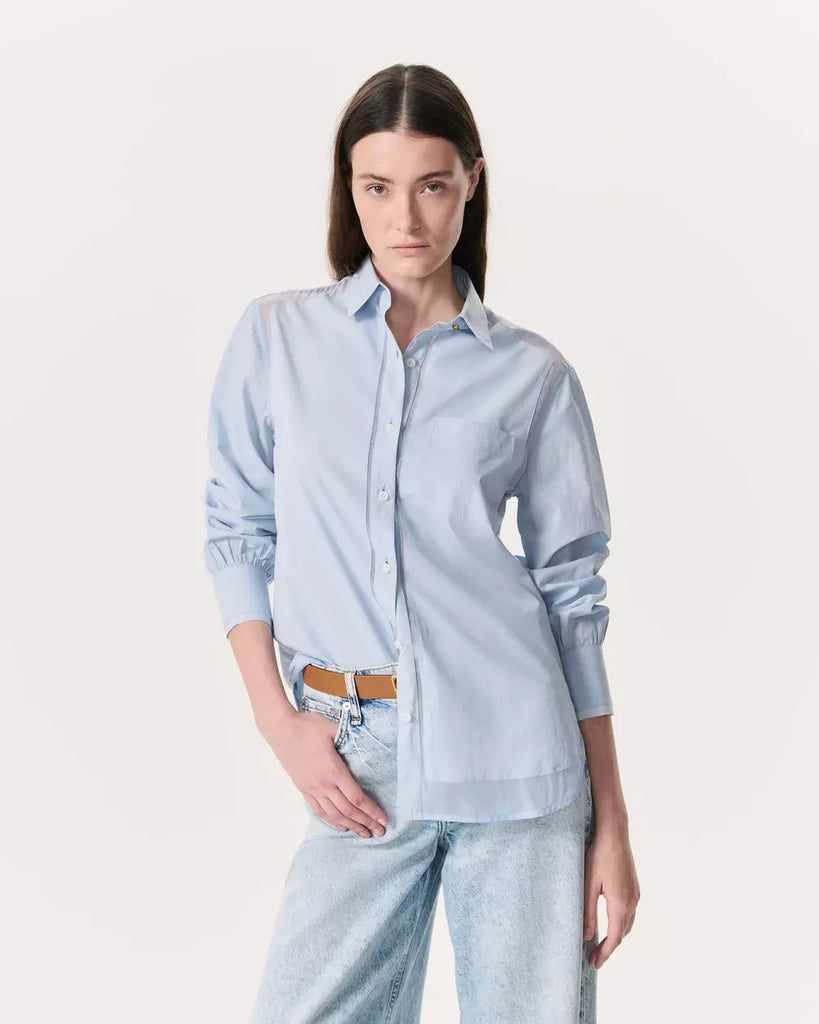 Tailored to perfection, this relaxed-fitting update to our iconic button-up shirt combines crisp cotton poplin with semi-sheer panels in fluid viscose organza.