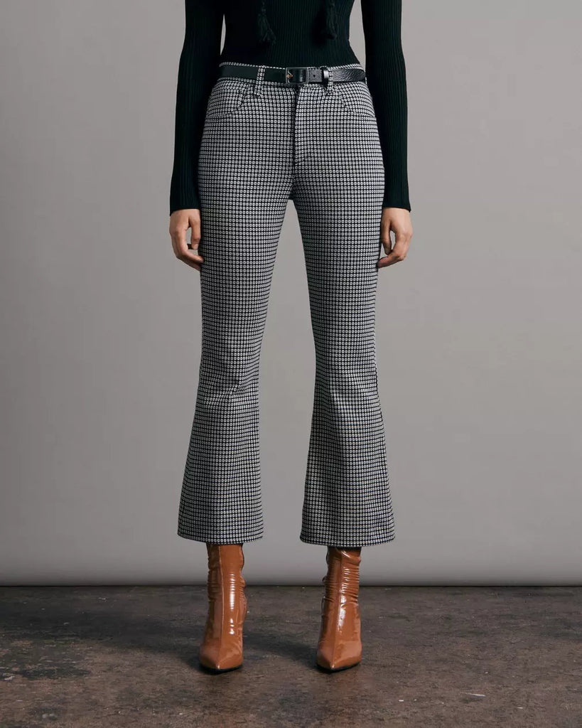 A cropped flare style made in a knit jacquard, you'll want to live in. Crafted in knit jacquard with a touch of stretch.