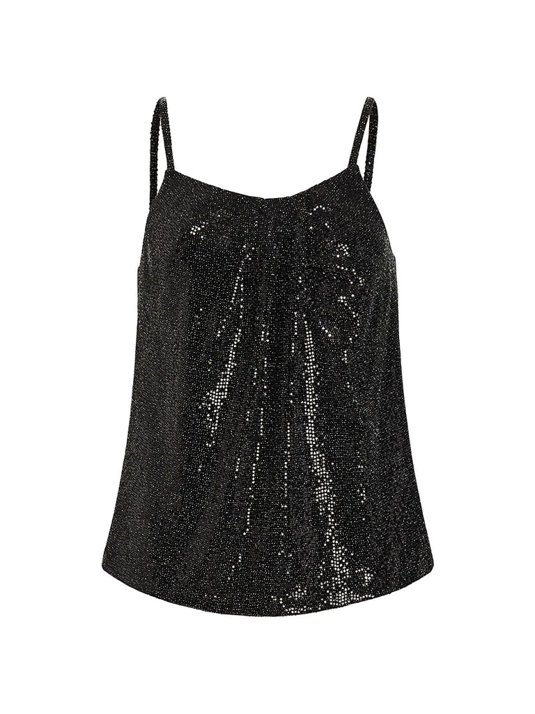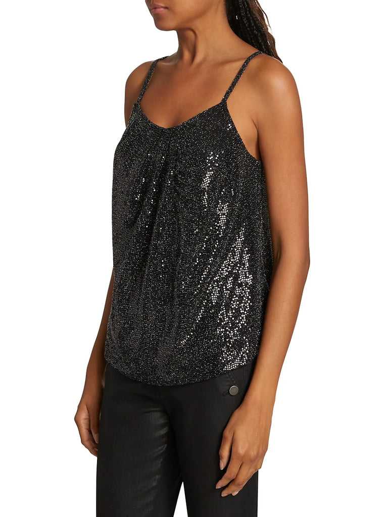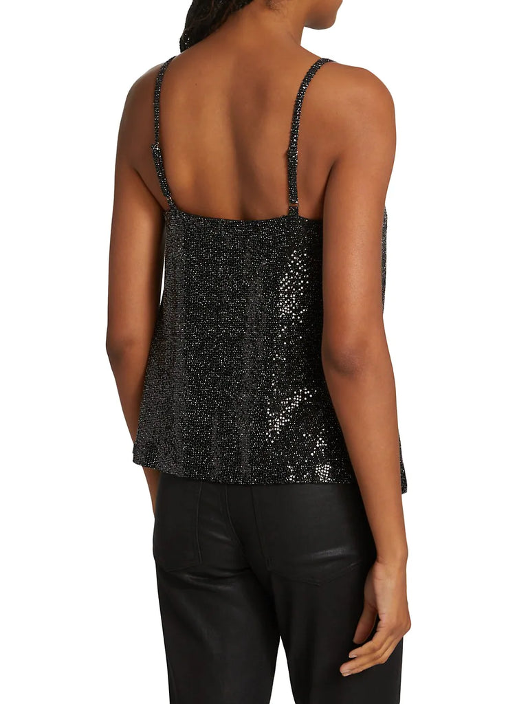 Ramy Brook's Graham camisole showcases sparkling sequins. This sleeveless style is finished with adjustable spaghetti straps, a V-neck, and a relaxed silhouette.