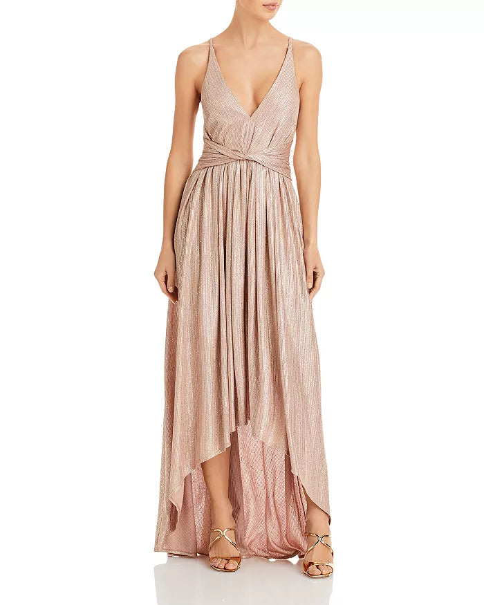 Tabitha Metallic Twist Waist High-Low Dress - Blush