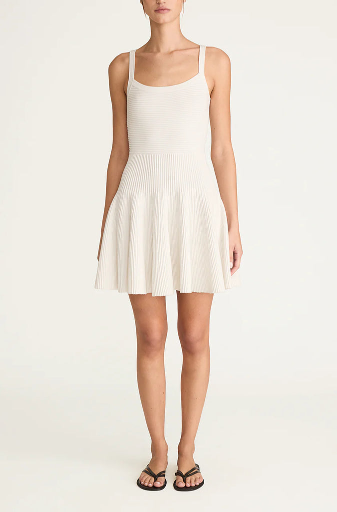 With a ballet-inspired scoop neck, this structured sweater dress is slim through waist and flared at the hem
