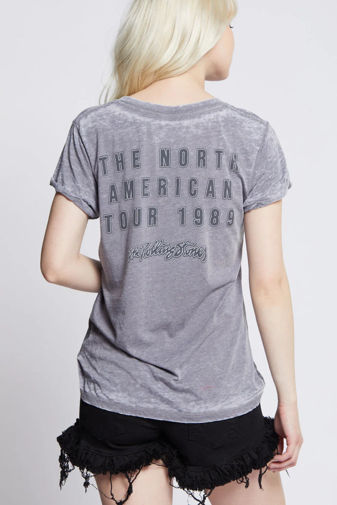 Hit the road with The Rolling Stones with our “Steel Wheels Tour” tee. This vintage inspired tee features authentic tour graphics on the front, and “The North American Tour 1989” on the back. Let’s rewind the clock and dance through the decades with these rock and roll legends. Made with soft vintage washed fabric, distressed edges, rolled sleeves, a ribbed crew neck, and a fitted silhouette.