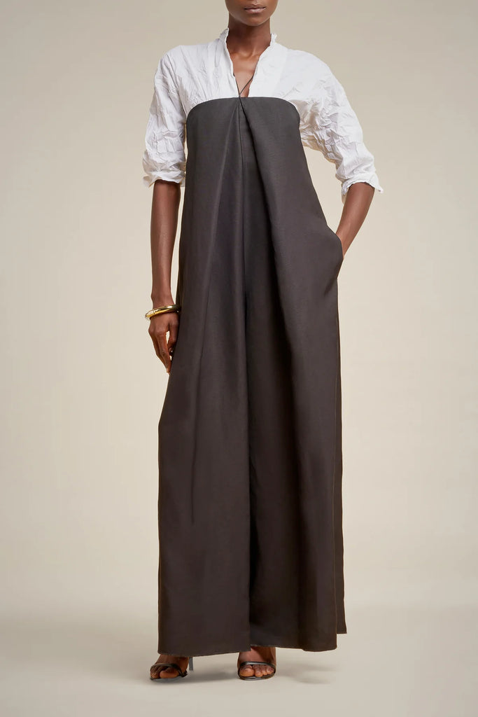 Bandeau jumpsuit in viscose-linen, lace at the neckline, zip at the center back, pleat at the center front, pockets inserted along the sides.73% VISCOSE 27% LINEN 67% ACETATE 33% POLYESTERS4LL4SL84-NERO