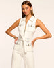 A utilitarian style with a sultry delivery, add ease to your wardrobe with the Bell, a denim ankle-length jumpsuit made to flatter your frame. With a sleeveless silhouette and self-tie removable belt, turn a day of errands into a fashionable occasion when you step out in the Bell.