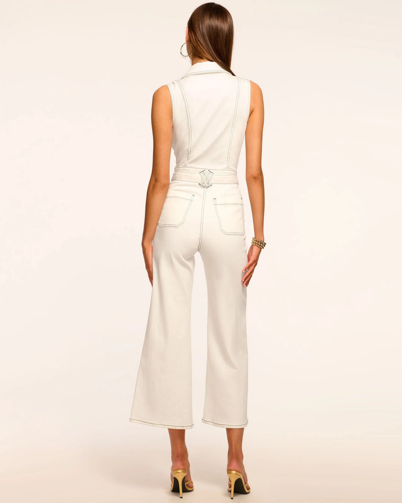 Bell Contrast Stitch Jumpsuit - White Stitched