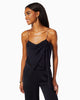 The Chrissy Jumpsuit is a reinterpretation of our best-selling Chrissy top. Made from a slinky satin charmeuse fabric, the cowl neck and cami shape bodice features silver chain straps and a captivating, draping panel, while the bottom half has a wide-cut leg silhouette that radiates disco vibes.