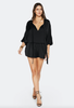 The Diane Romper is simple, yet sexy. Made from our beloved satin charmeuse fabric, this style features a relaxed 3/4 sleeve bodice and flattering v-neckline, as well as short shorts to show off your legs. The elastic waist flatters your figure, while the neck tie detail can be left undone or tied. Just add your favorite stilettos or sandals to complete the look!
