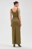 In a rich military green hue, this dress features a fitted bodice that defines the waist, flowing into a soft A-line shape. Crisp tailoring enhances its structured elegance.
