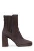 ROSEMARY rises high on a sleek covered block heel and platform. Featuring a genuine suede upper with stretch panels for added flexibility, this bold bootie is a modern classic. A memory foam insole and rubber outsole provide comfort and traction, while an inner zip closure makes the shoe easy to pull on and off.
