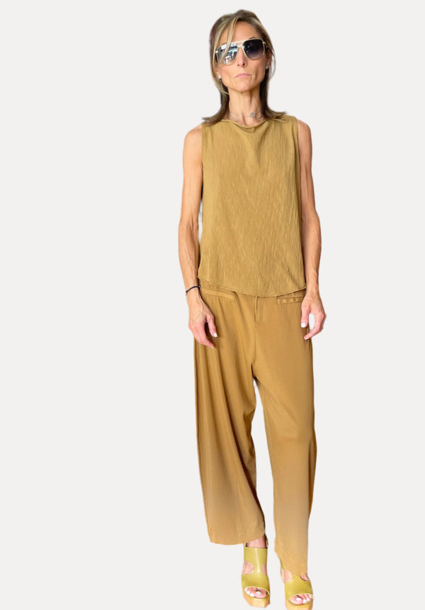 Tribeca Knit Skirt - Knitsun Pleats Camel and Brown