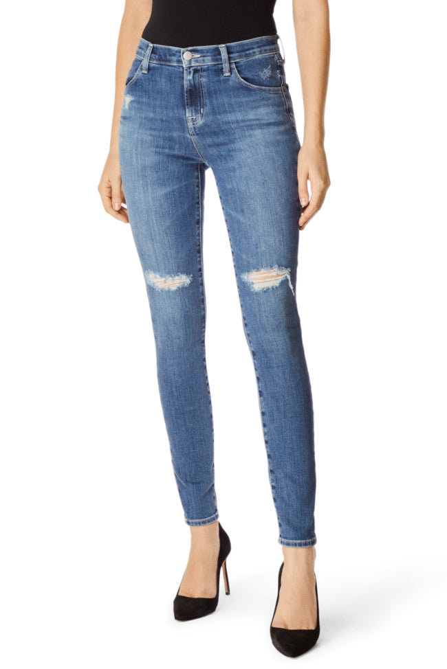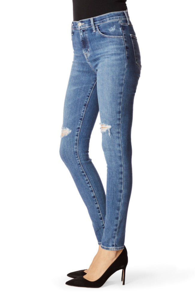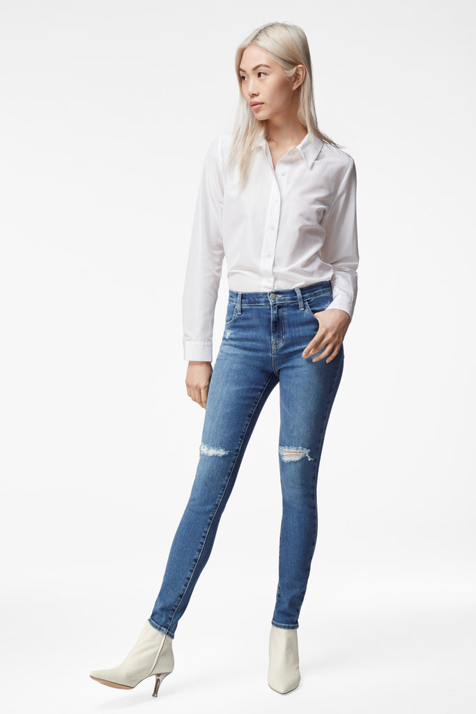 The popular Maria high-rise super-skinny pant in our beloved Comfort Stretch denim, with ample stretch and softness to make it your favorite jean ever. In a classic mid-indigo wash with some vintage markings plus destruction at the knees. Clean hems.