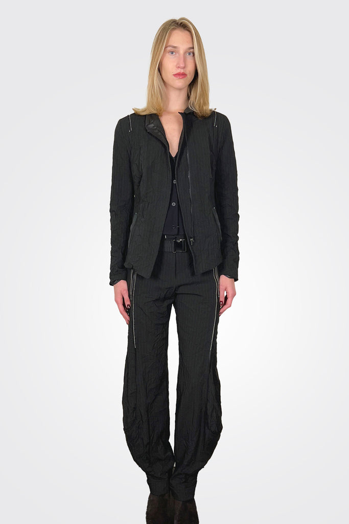 Detailed Pinstripe Trousers - Black Pepper