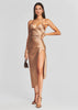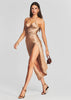 Classic yet sexy, the Emma Dress is a wardrobe must-have. Cut in smooth silk, the design features crossover straps, a low back, and a seductive thigh-high slit. The style is finished with an asymmetric hem and a hidden side zip closure. Shown here in Natural.