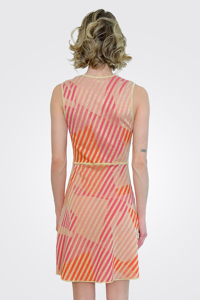 Graphic geo pattern in colorful combo of superfine cotton yarns offset by gold lurex diagonal striping