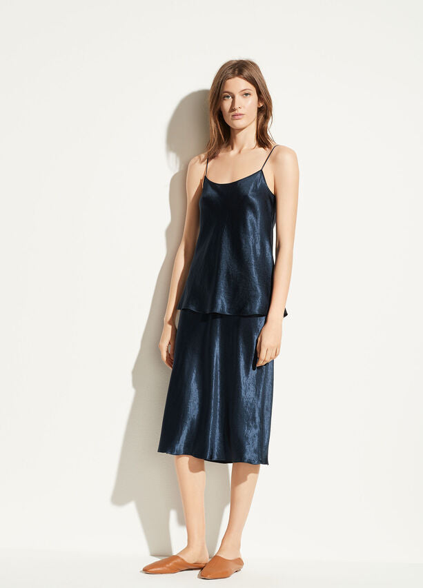 A modern camisole cut from lustrous Japanese satin. Pair with the coordinating skirt or play it down with denim.