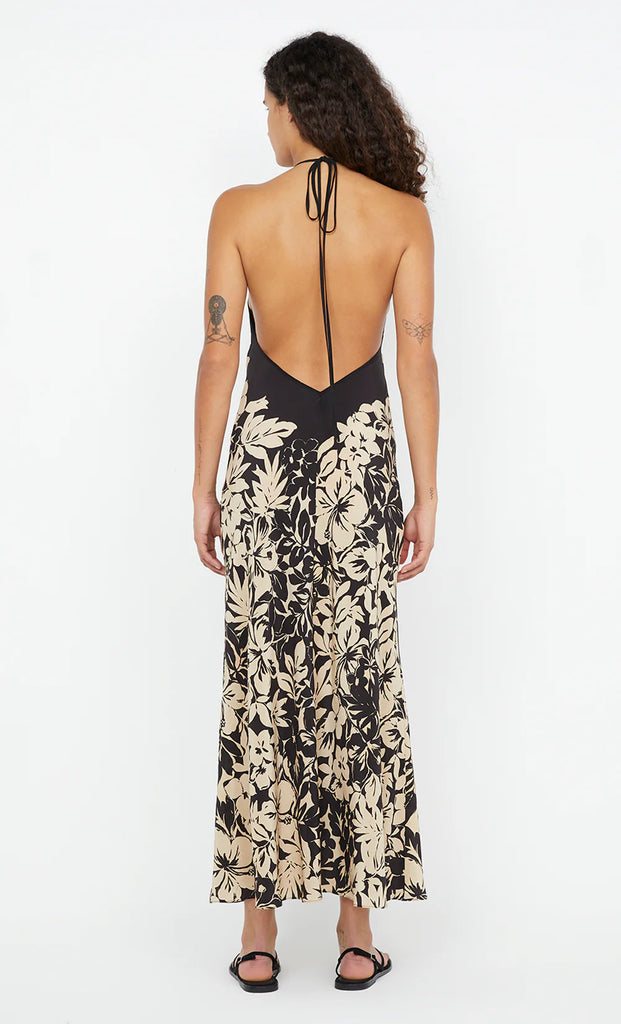 The BEC + BRIDGE Astala Midi Dress in Ilia Floral is a timeless and elegant piece crafted from placement-printed Silk Crepe De Chine. Featuring a halter neckline that ties at the back and a low back design, this bias-cut midi dress is designed to skim the silhouette for a flattering fit. Finished with a narrow turned-up hem, it’s perfect for weddings, cocktail events, or summer soirées.