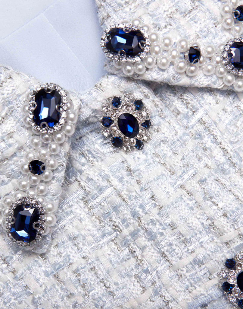 With a flattering revere collar, diamanté trims and sparkling buttons, this bouclé dress is the one-and-done answer to every occasion. Pair its mini length with ballet flats and ankle boots alike.