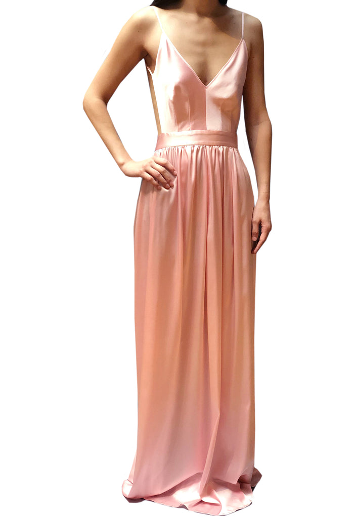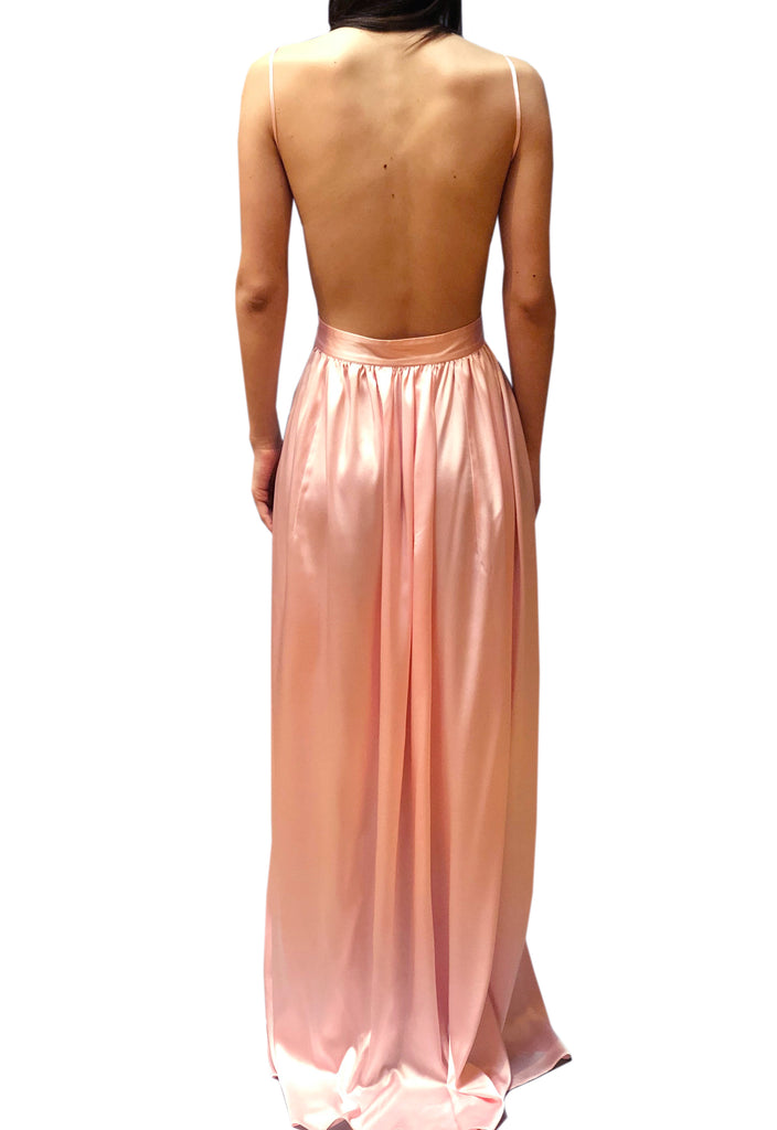 This beautiful silk charmuese dress has a stunning neckline with an open back.
