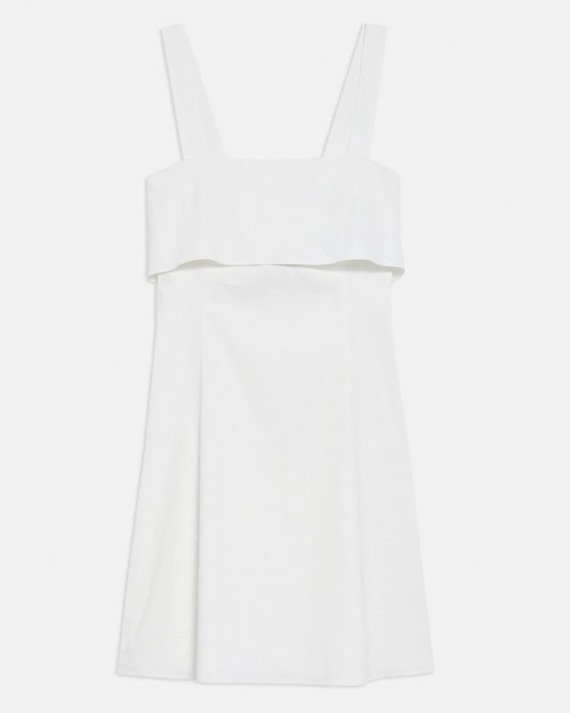 Tailored for a classic fit-and-flare that contours to the body, this mini dress is detailed with a ruffled square neckline that cascading along the back with a concealed back zip closure. Crafted from signature stretch Good Linen fabric, this sleeveless style is a warm-weather favorite for brunch dates or summer events alike.