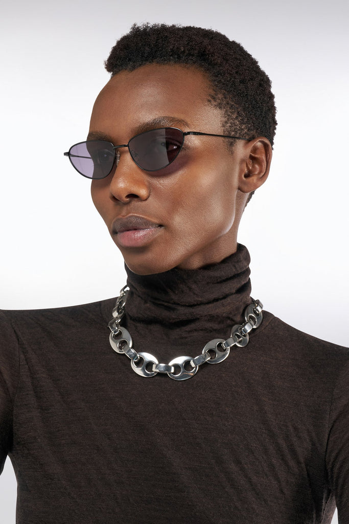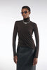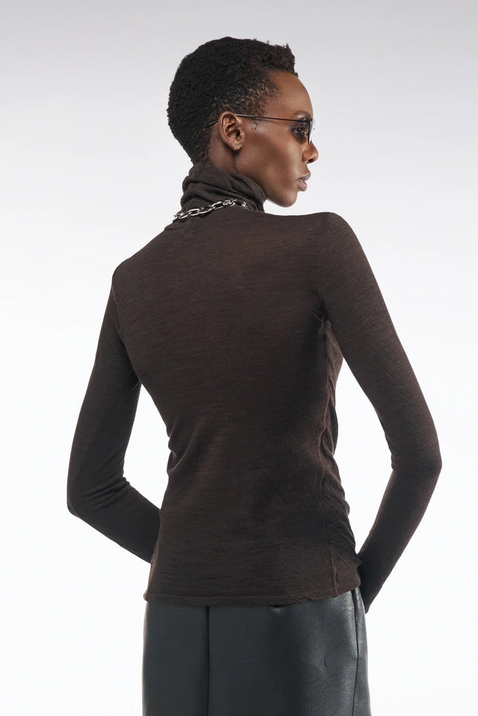 DARK BROWN WOOL JERSEY T-SHIRT. HIGH NECK, LONG SLEEVES AND REGULAR FIT.