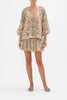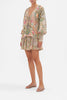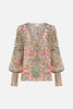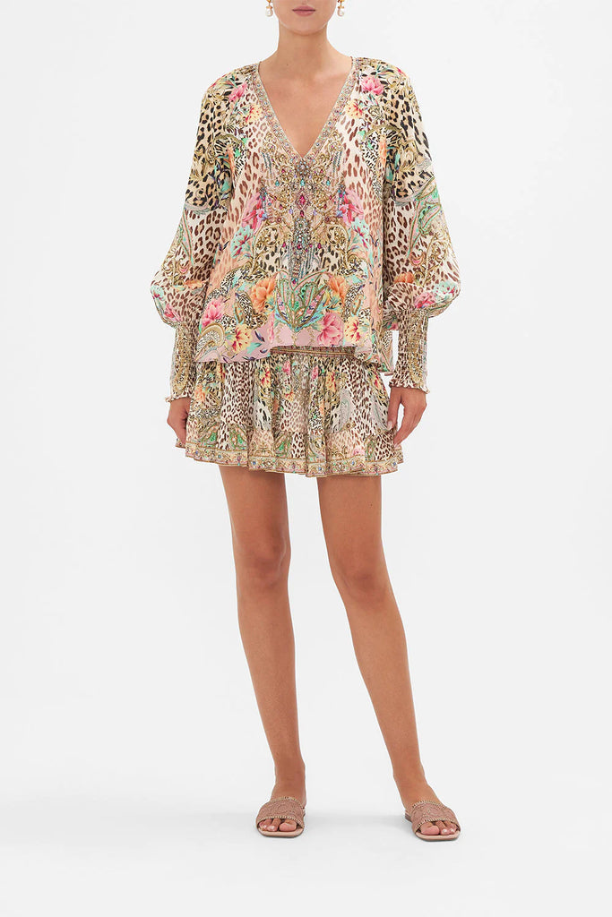 The Queen Atlantis Shirred Cuff Blouse brings back a classic with timeless leopard print finished with petals dipped in blush hues, roped accents and gold baroque detailing. Complete with hand-embellished CAMILLA crystals, this luxury silk crepe blouse is home to billowy blouson sleeves, a deep v neckline that meets an intricate amulet, shirring details at the cuffs and a relaxed silhouette made perfect for French tucks.