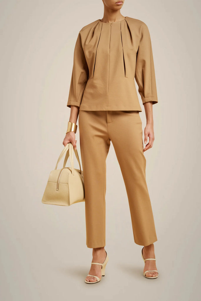Milano stitch trumpet cropped trousers, front closure with zipper, inside waist finished with elastic band.