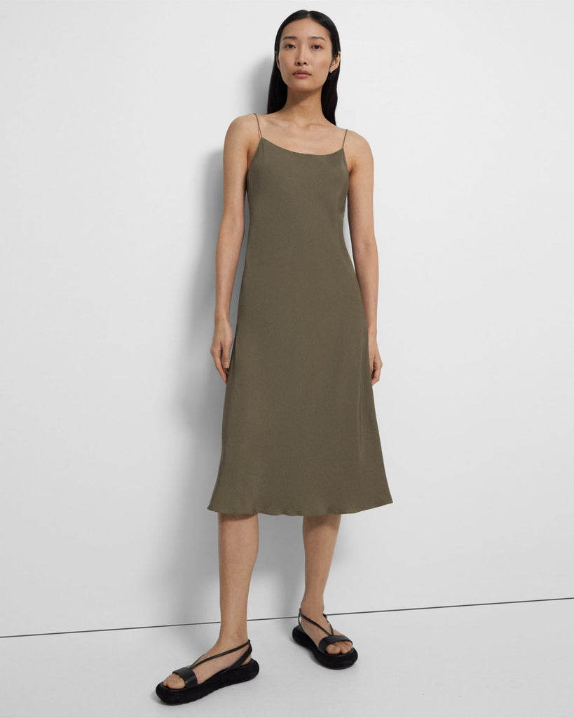 The back of this modern slip dress is lightly smocked for a more flattering fit. This elevated style is meticulously crafted from crafted in our Japanese twill that features a washed look and smooth drape.