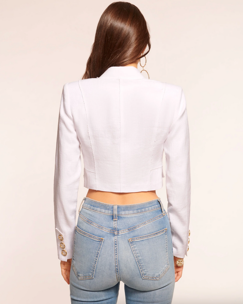 Modern suiting has never looked hotter than with the Emmeline. This cropped blazer takes all the power of office attire and gives it a contemporary spin, pairing a short silhouette with statement buttons to reveal the perfect amount of skin.