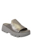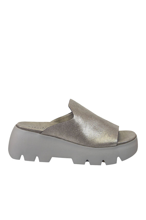 Metallic platform leather slides on Naked Feet's all new Fashion Light sole - Drift in silver is the epitome of modern effortless fashion with the most essential silhouette, on an unbelievably lightweight lug sole. Slip on and forget about it, in this casual day-to-night style you can wear to literally just about every occasion. Looking for one pair to wear everywhere? Don't miss your sign.